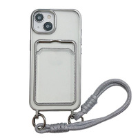 Clear Phone Case Card Slot Transparent Shockproof Protective Hand Strap Phone Cover Case for iPhone 16 15 14 13 12 Pro Max Plus